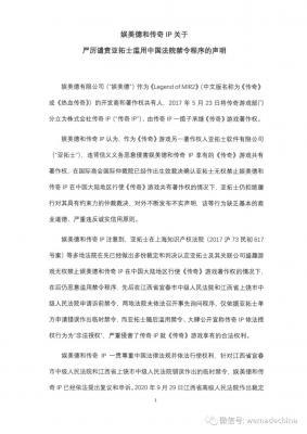 202104-30作为《传奇》游戏共有著作权人,株式会社传奇IP(下称“传奇IP”),以及母公司娱美德有限公司(下称“娱美德”),针对深圳娱美德传奇科技有限公司假借“娱美德”名义...